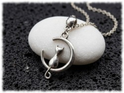 Necklace and silver Cat in the Moon pendant